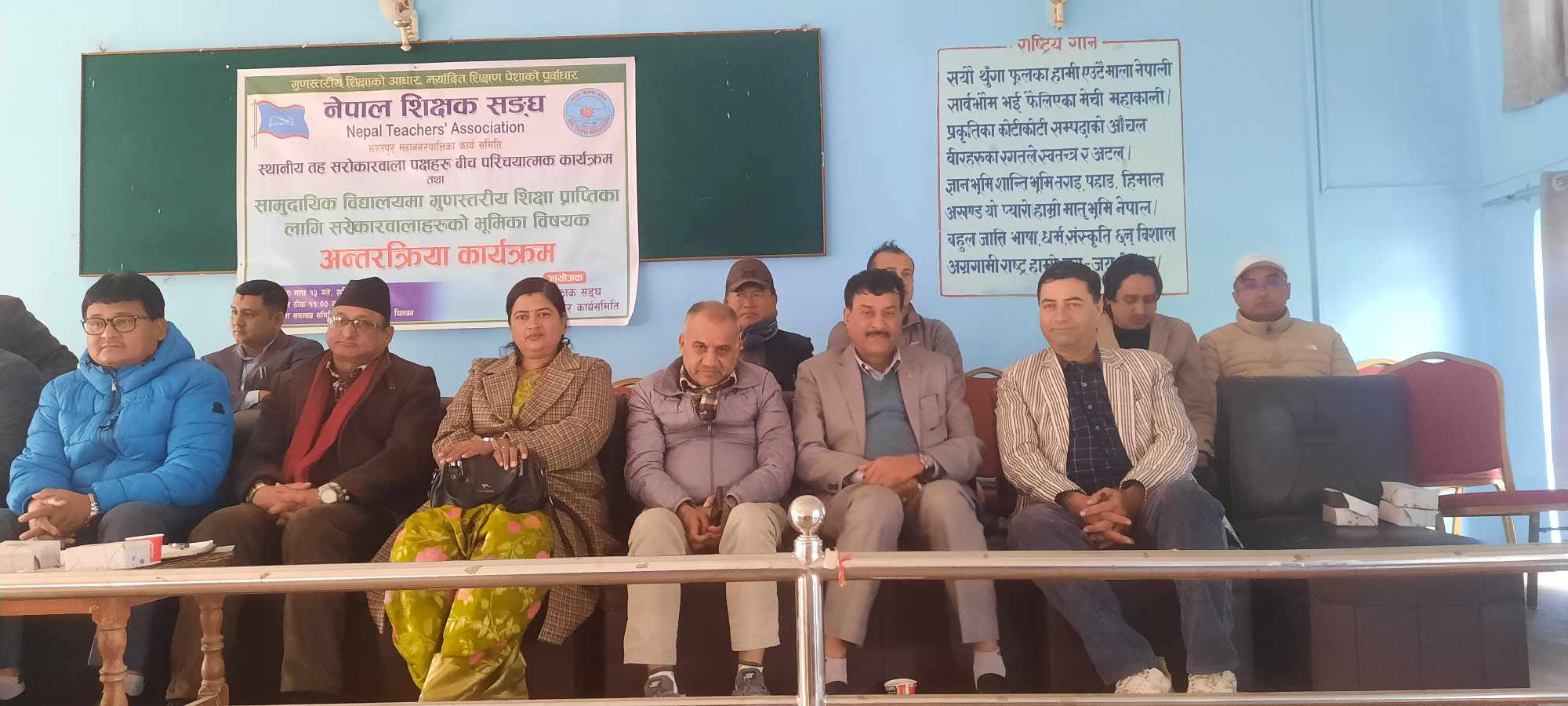 नेपाल शिक्षक संघ भरतपुरका सचिव राजु खनालले शिक्षाको गुणस्तर वृद्धिका लागि सरोकार पक्षसँगको समन्वयमा कार्ययोजना तयार गरिने बताए ।
